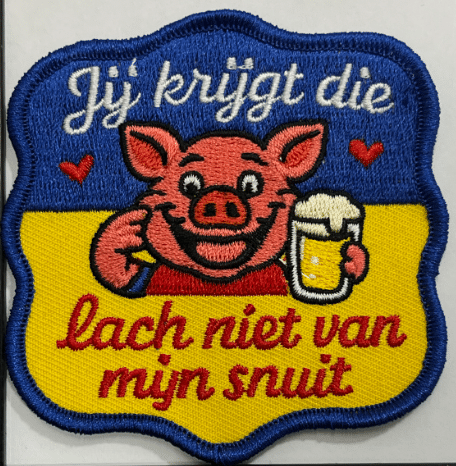 Een echte klassieker onder de carnavalsteksten, maar dan met een Krullendonkse twist. Dit embleem met breedlachend varken en bierpul is de perfecte knipoog naar de sfeer die carnaval zó mooi maakt.