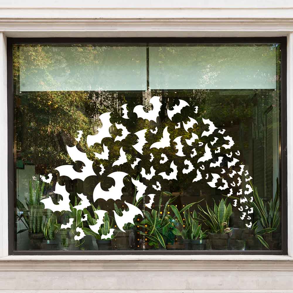 Raamfolie Halloween zwerm vleermuizen is een statisch hechtende raamfolie .
